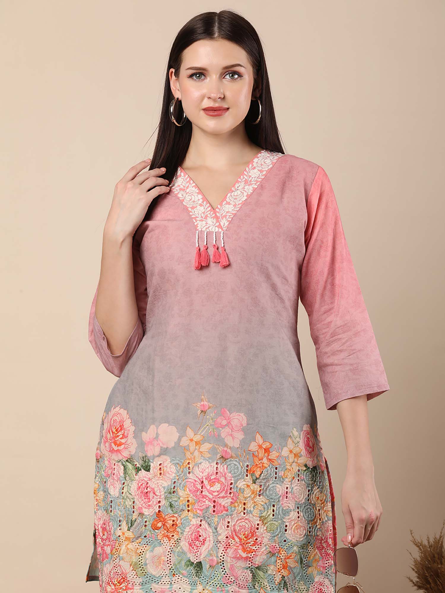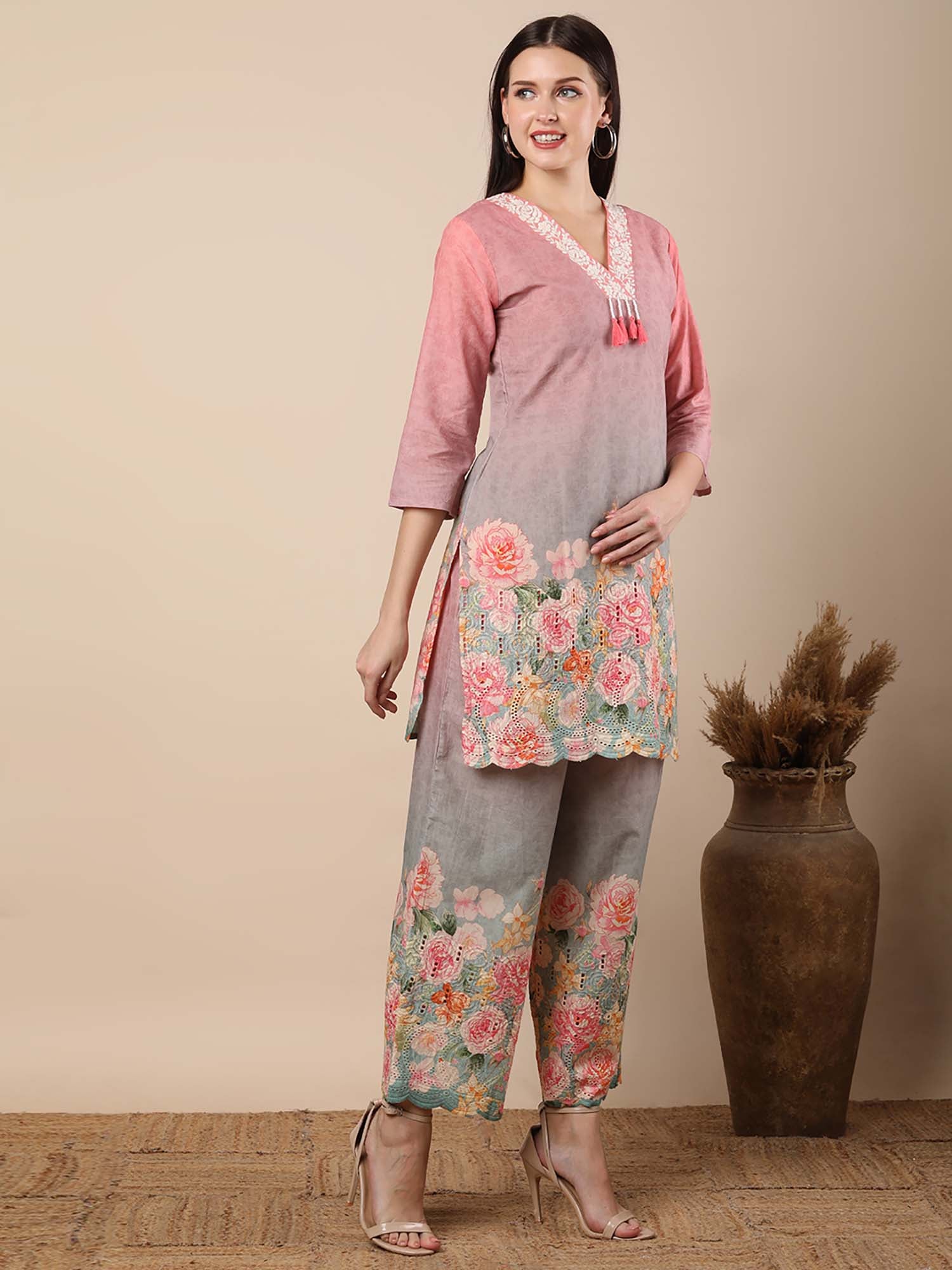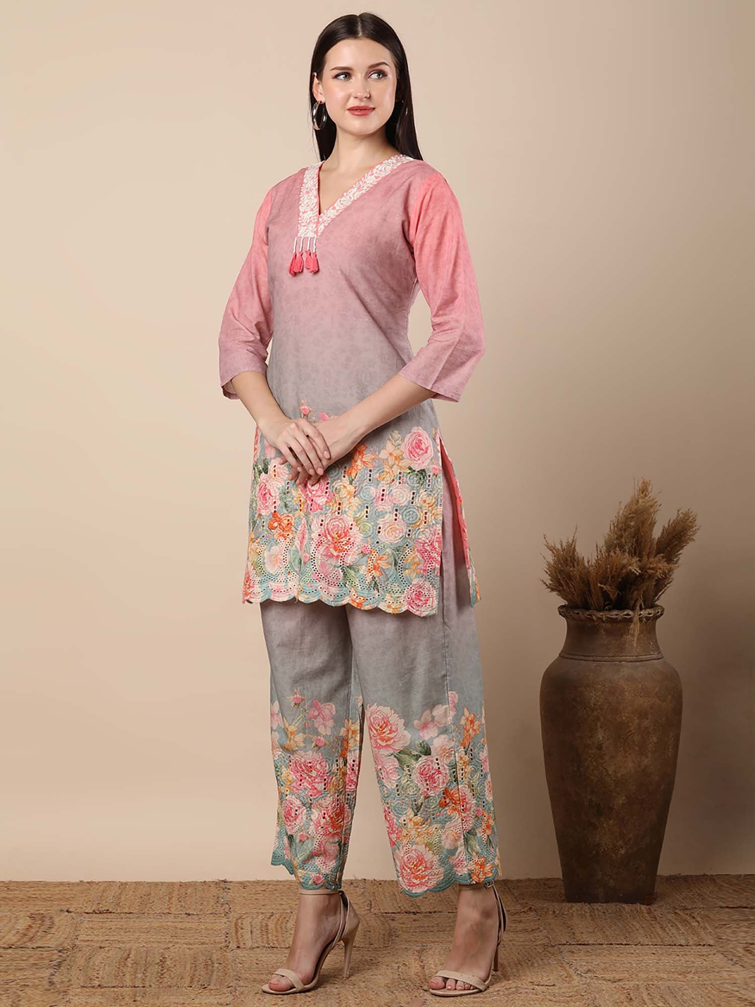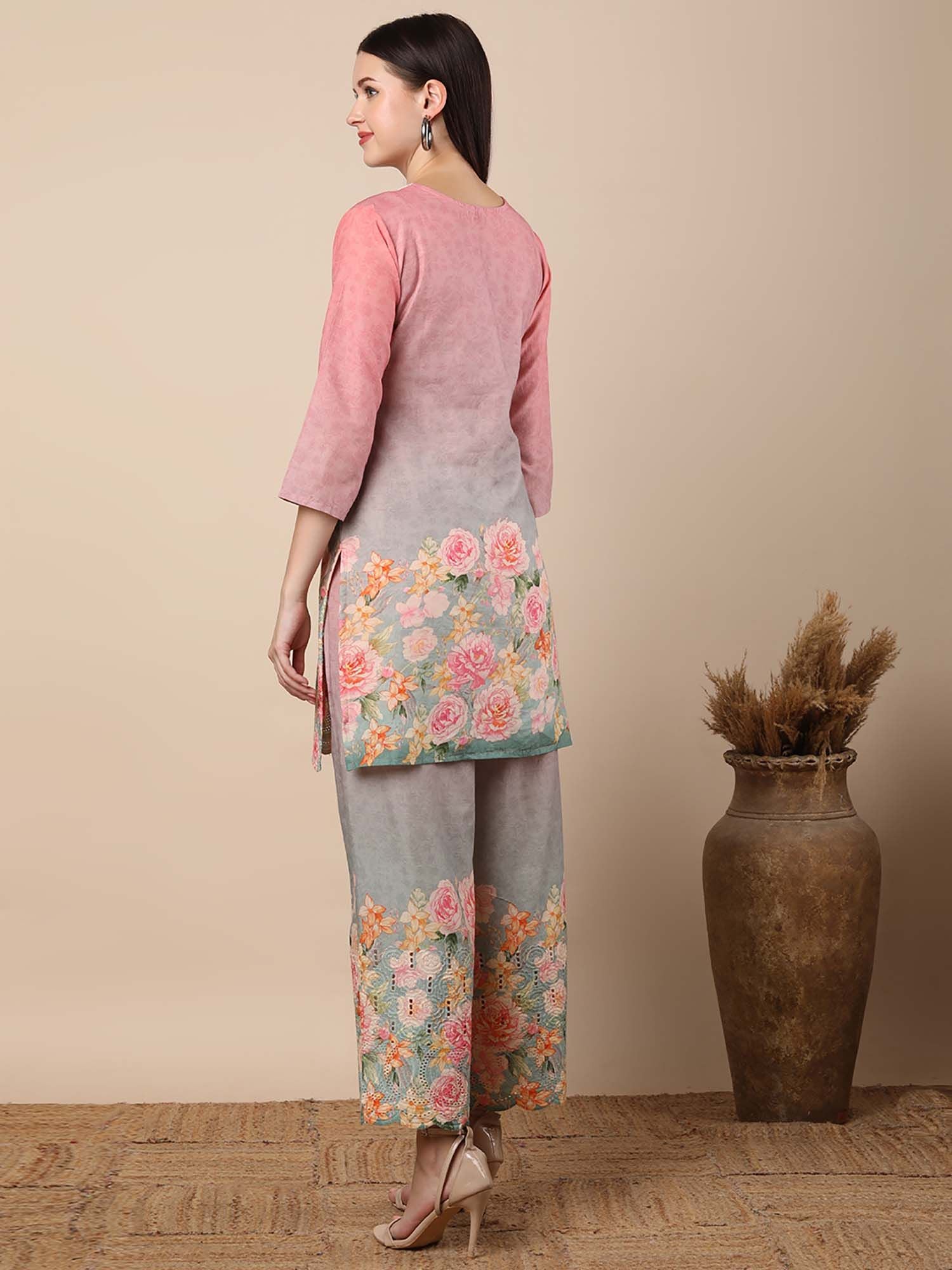 Abstract Floral Printed Straight Fit Co-Ord - Multi-Color (Set of 2)