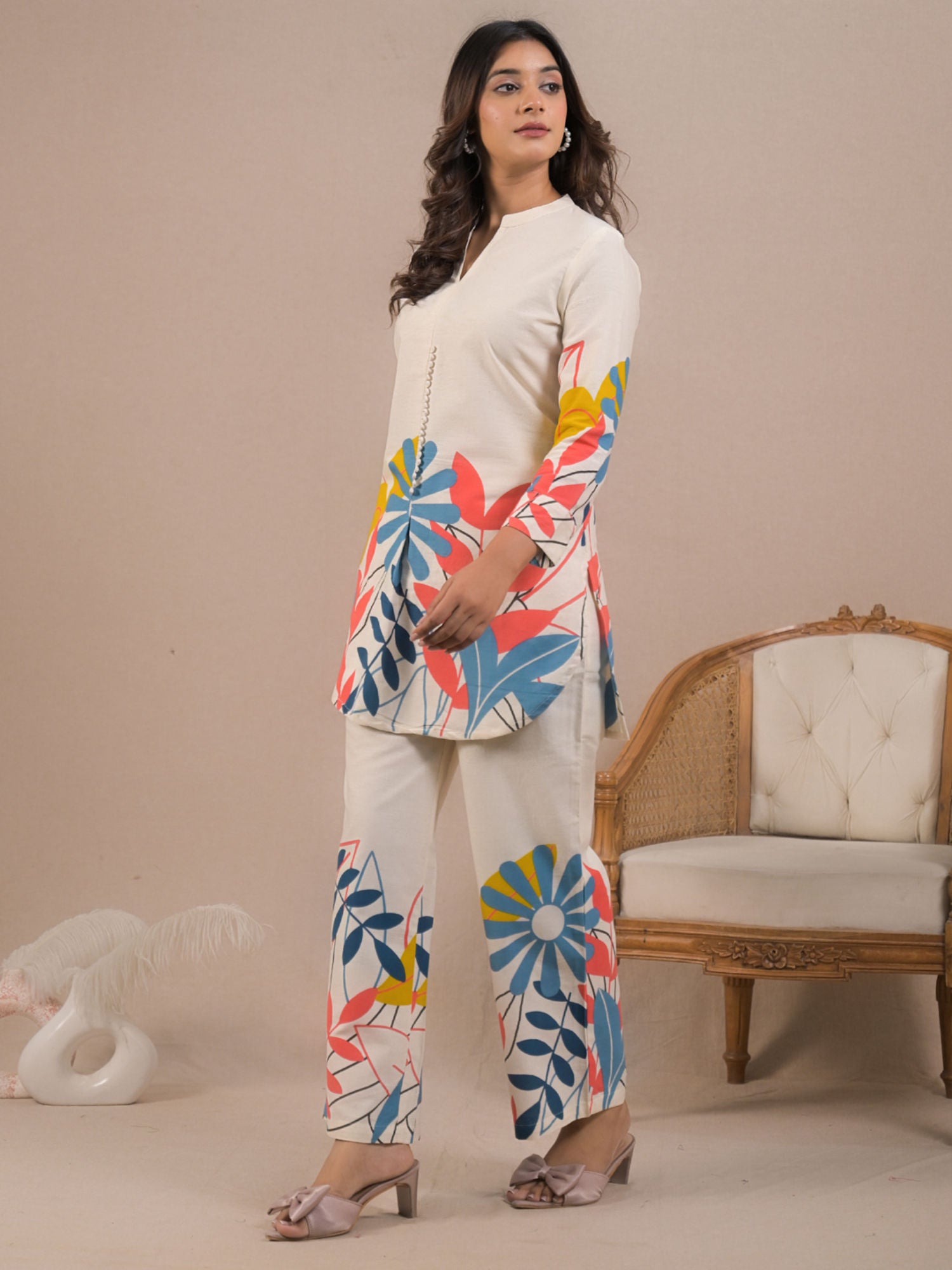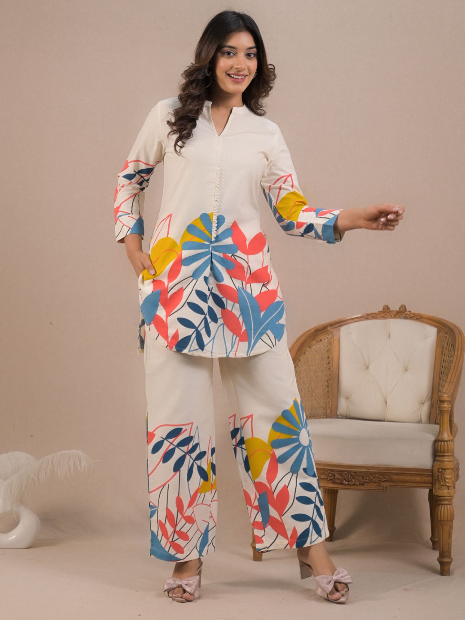 Curved Style Cotton Flex Fabric Off White Co-Ord (Set of 2)