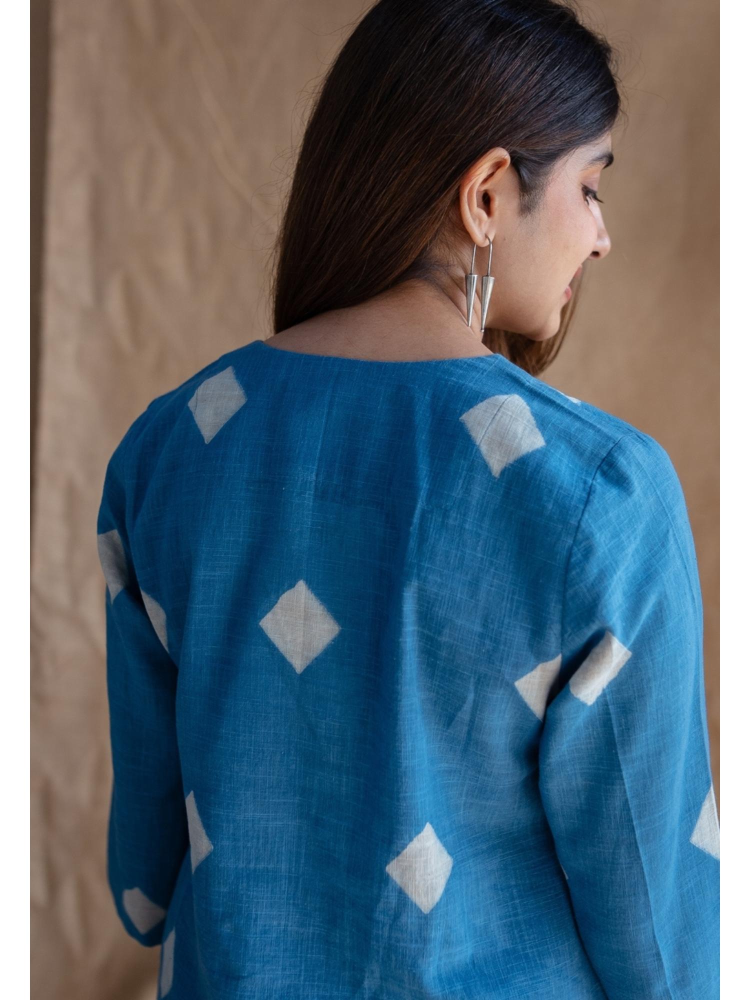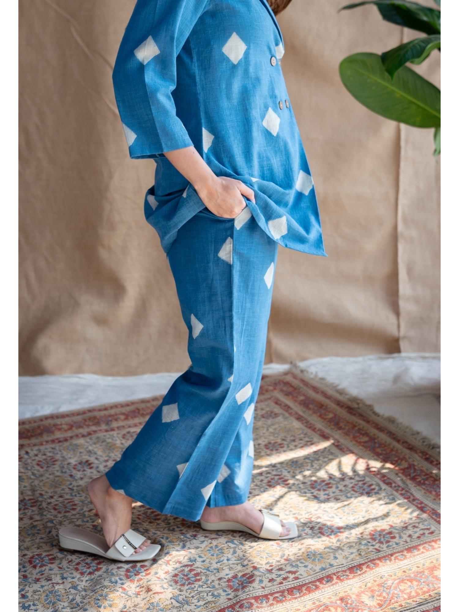 Blue Straight Dabu Slub Cotton Printed Co-Ord (Set of 2)