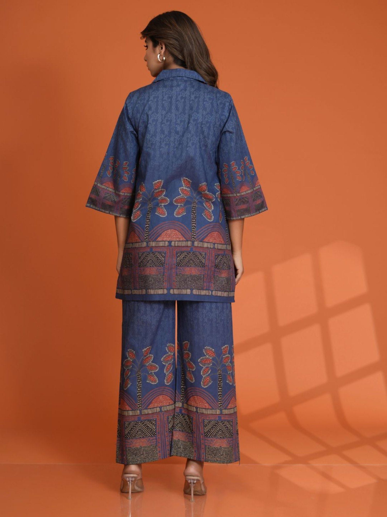 Cobalt Blue Border Printed Beaded Co-Ord (Set of 2)
