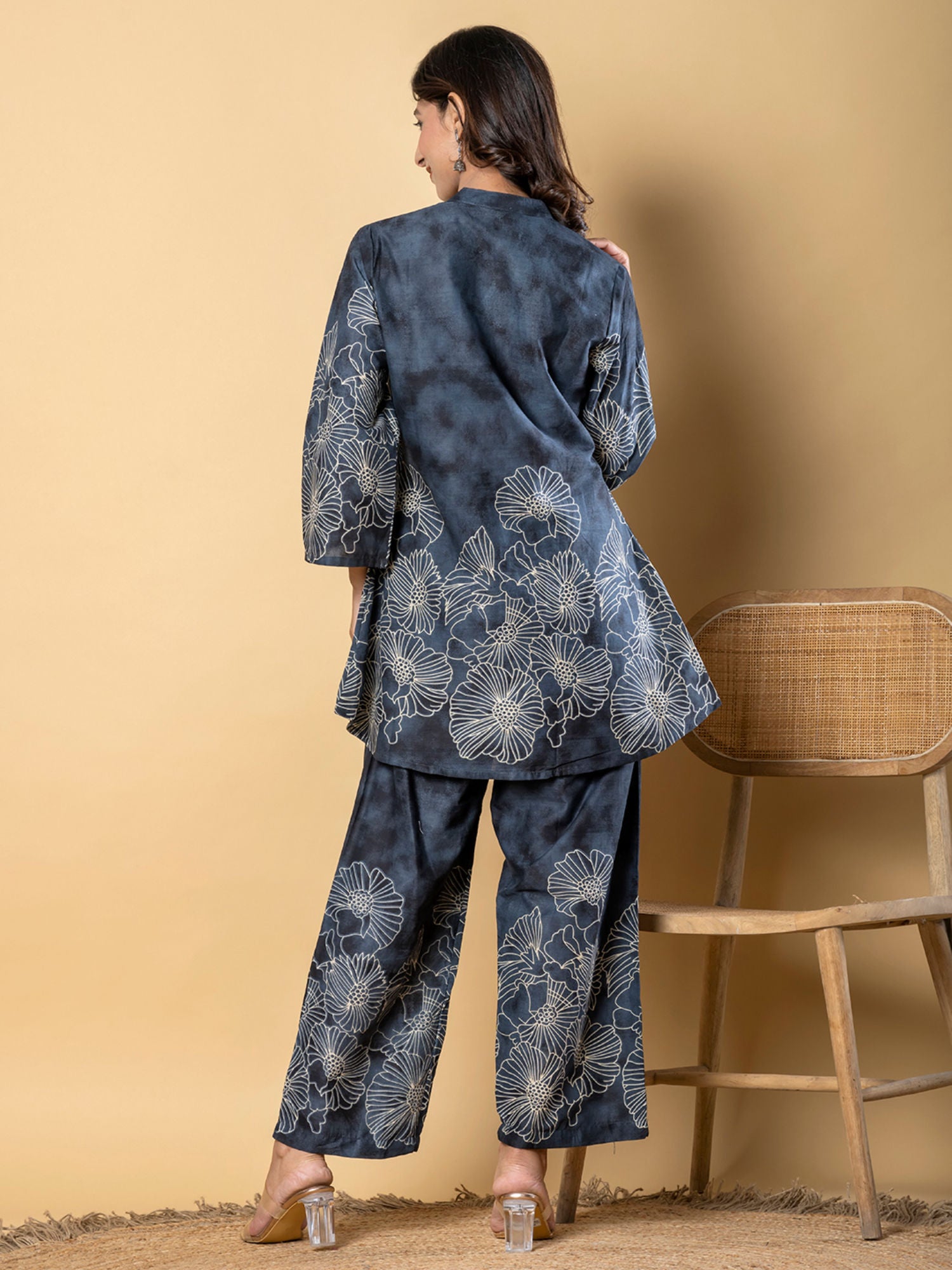 Curved Style Cotton Blend Fabric Grey Co-Ord (Set of 2)