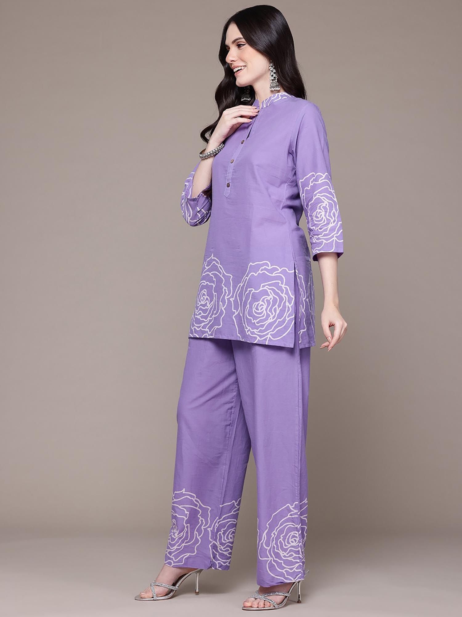 A Line Style Cotton Fabric Lavender Color Co-Ord (Set of 2)