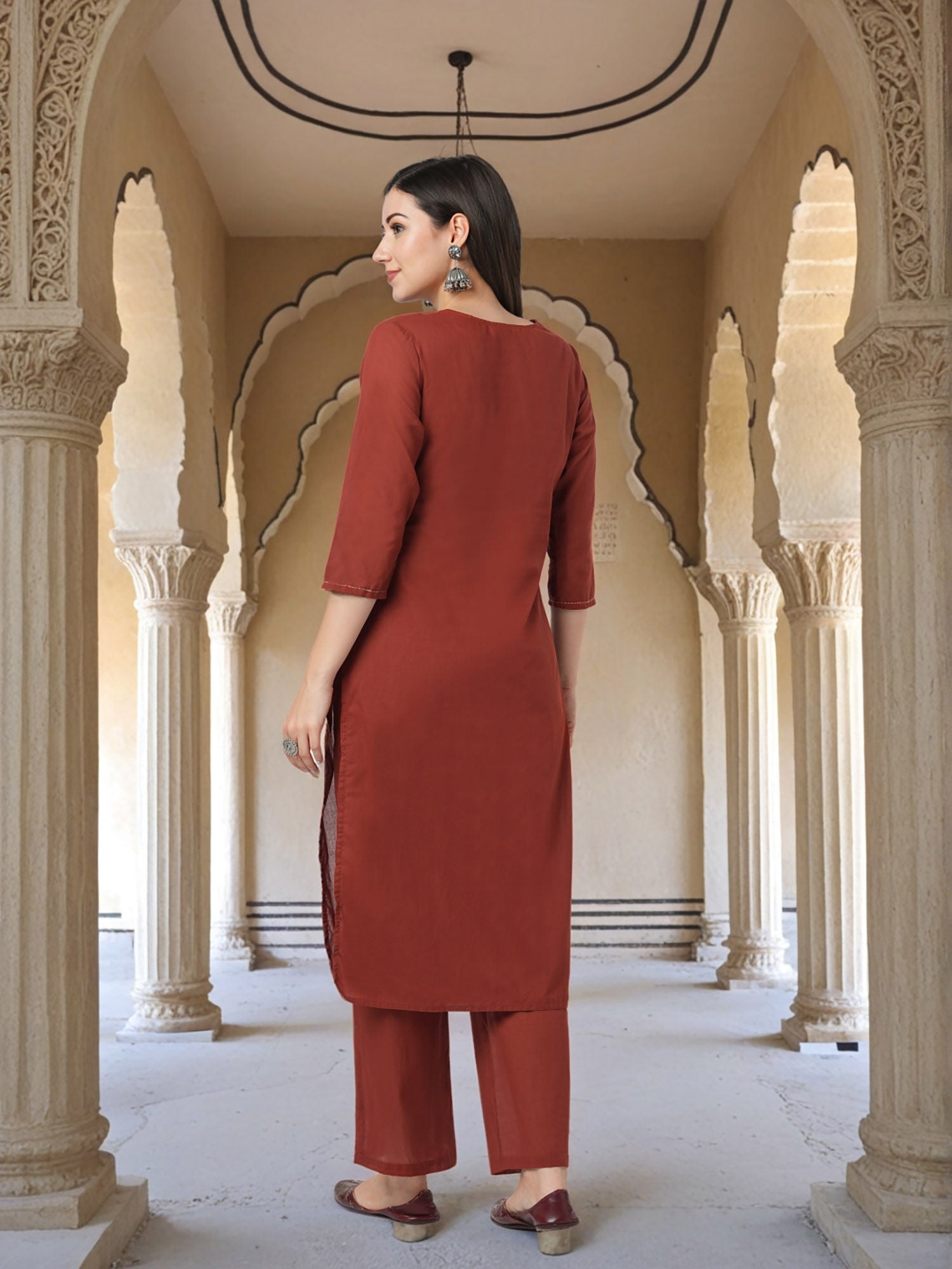 Solid Figurative Thread Embroidered Straight Fit Co-Ord (Set of 2)