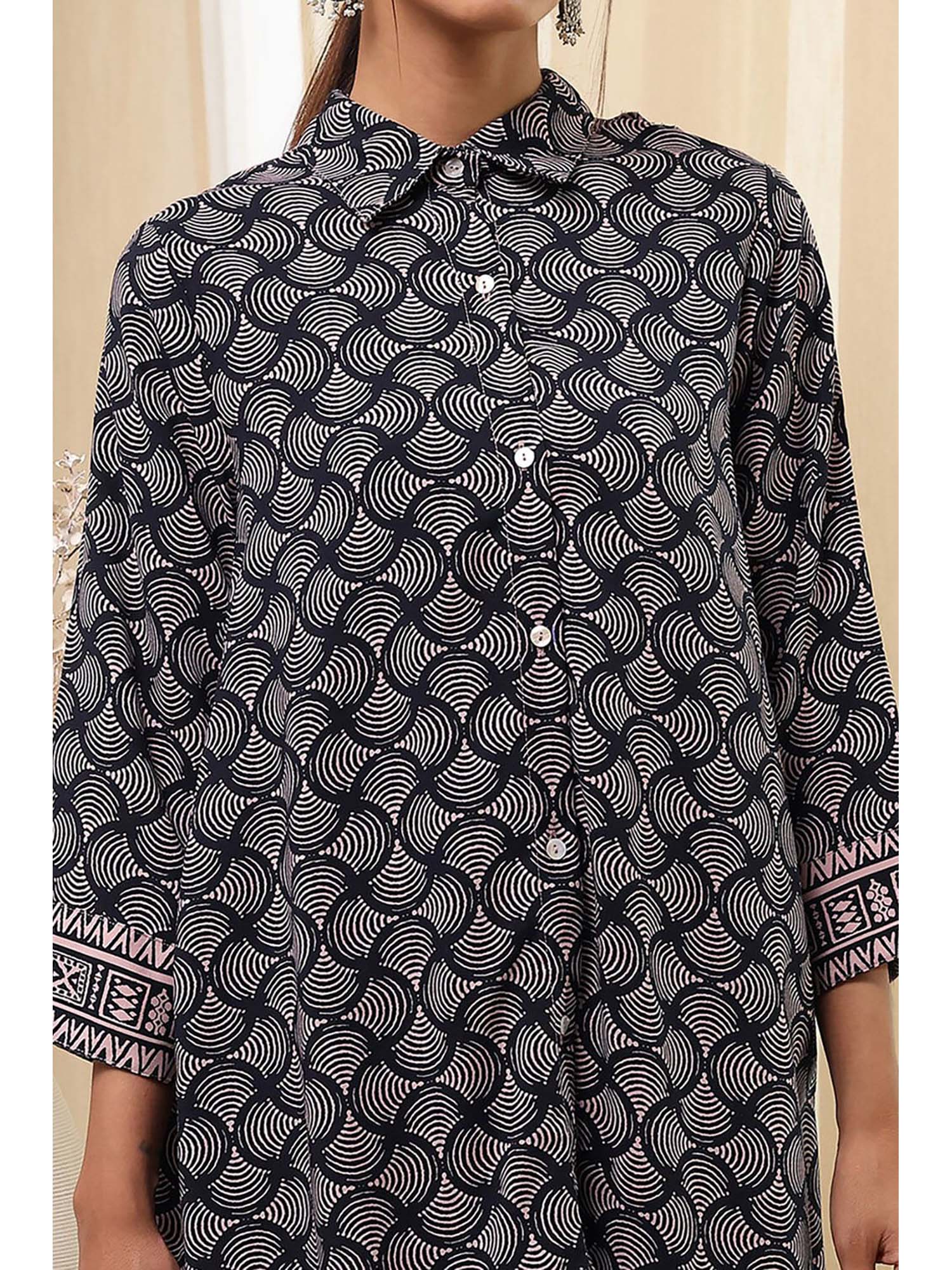 Women Black Viscose Rayon Straight Co-Ord (Set of 2)