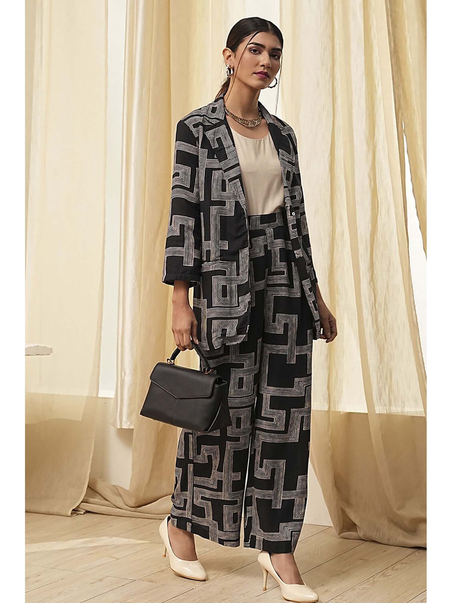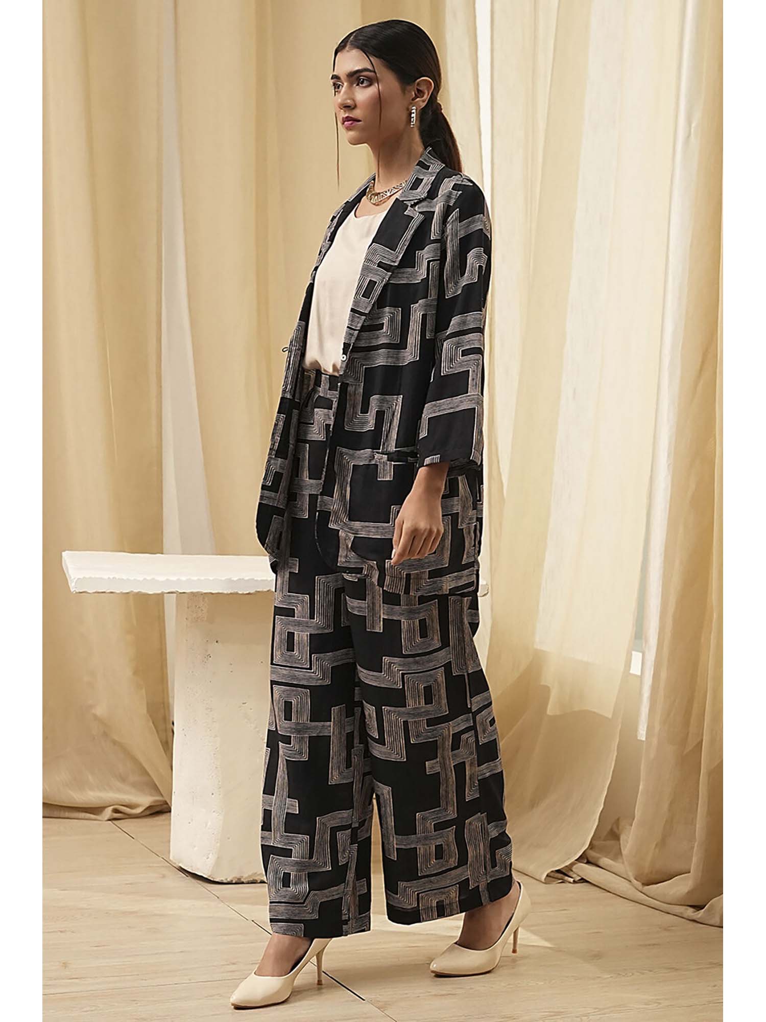 Women's Black Viscose Printed Co-Ord (Set of 3)
