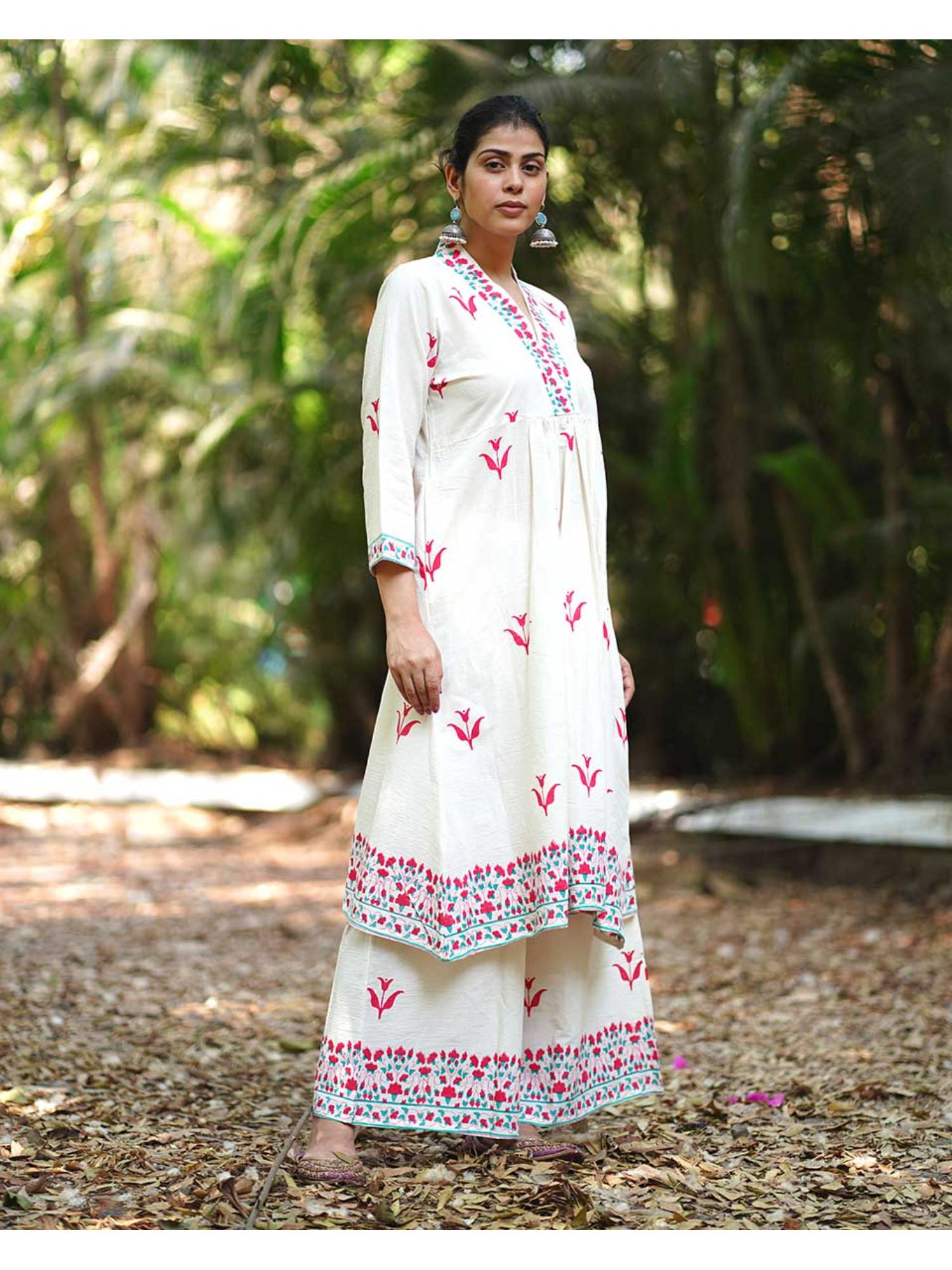 Womens Printed A-Line Cream Co-Ord (Set of 2)