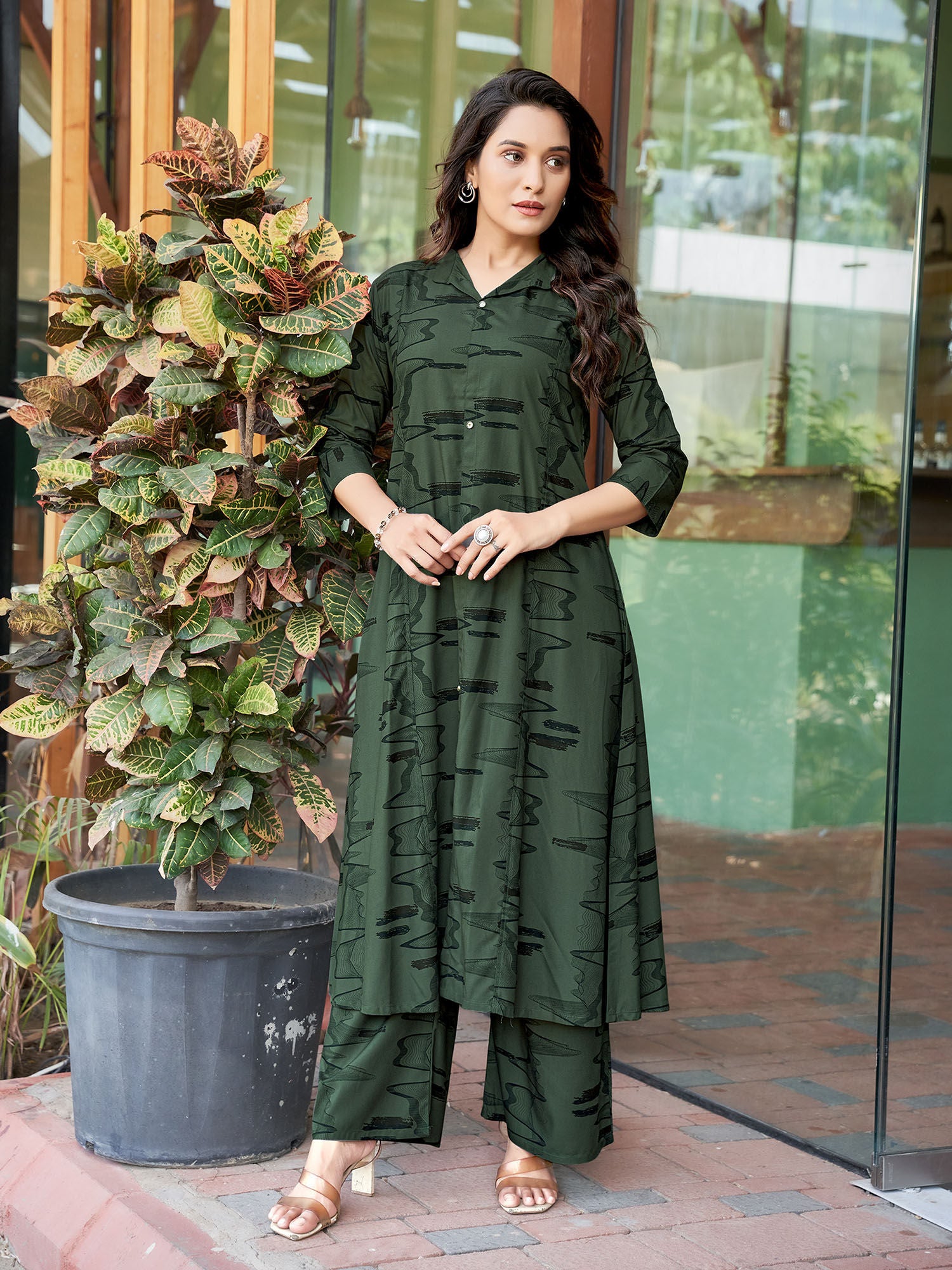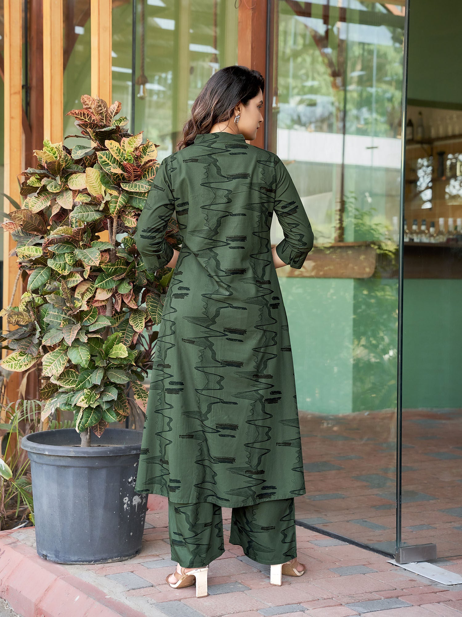 Women Dark Green Rayon Abstract Print Co-Ord (Set of 2)