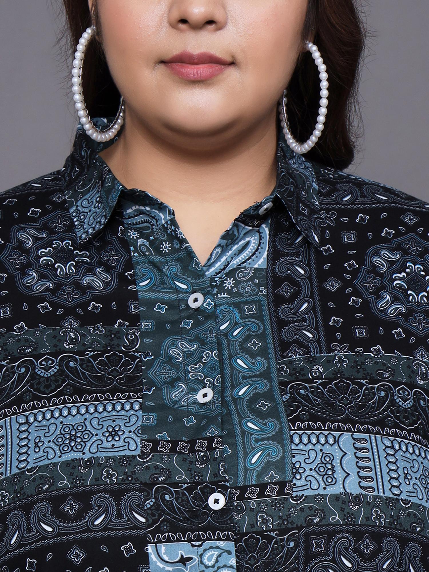 Women Plus Size Pure Cotton Black Printed Co-Ord Set