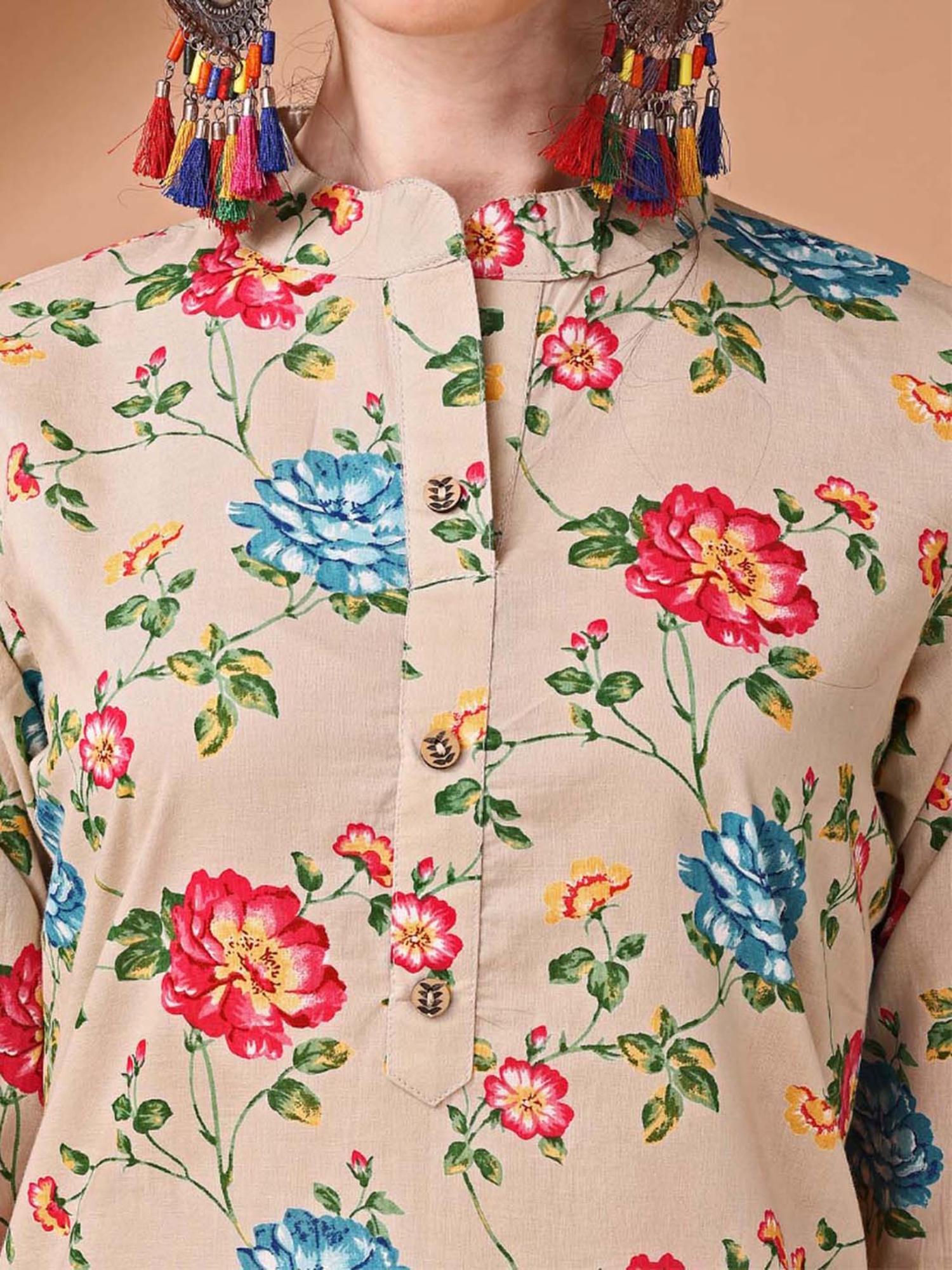 Cotton Floral Printed Beige Co-Ord (Set of 2)