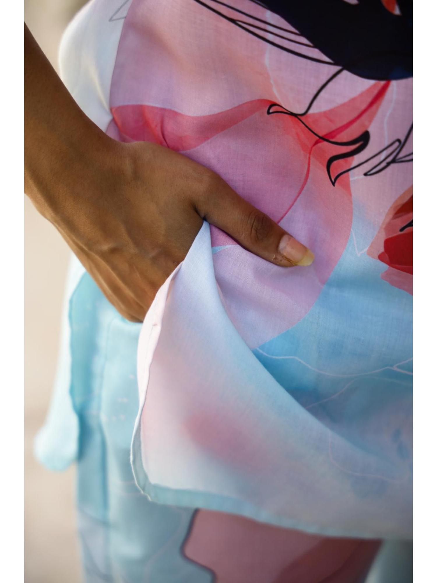 Womens Sky Blue Floral Stylish & Comfortable Co-Ord Set