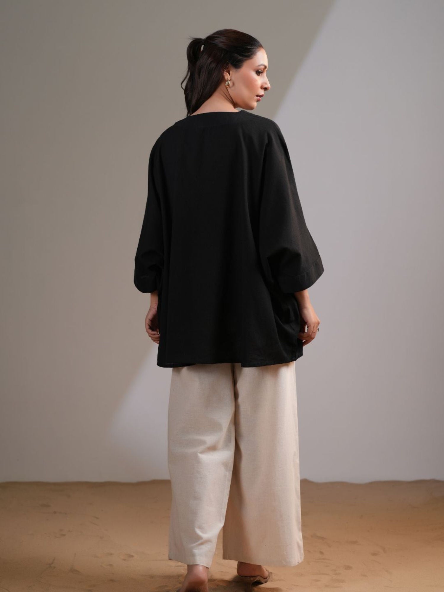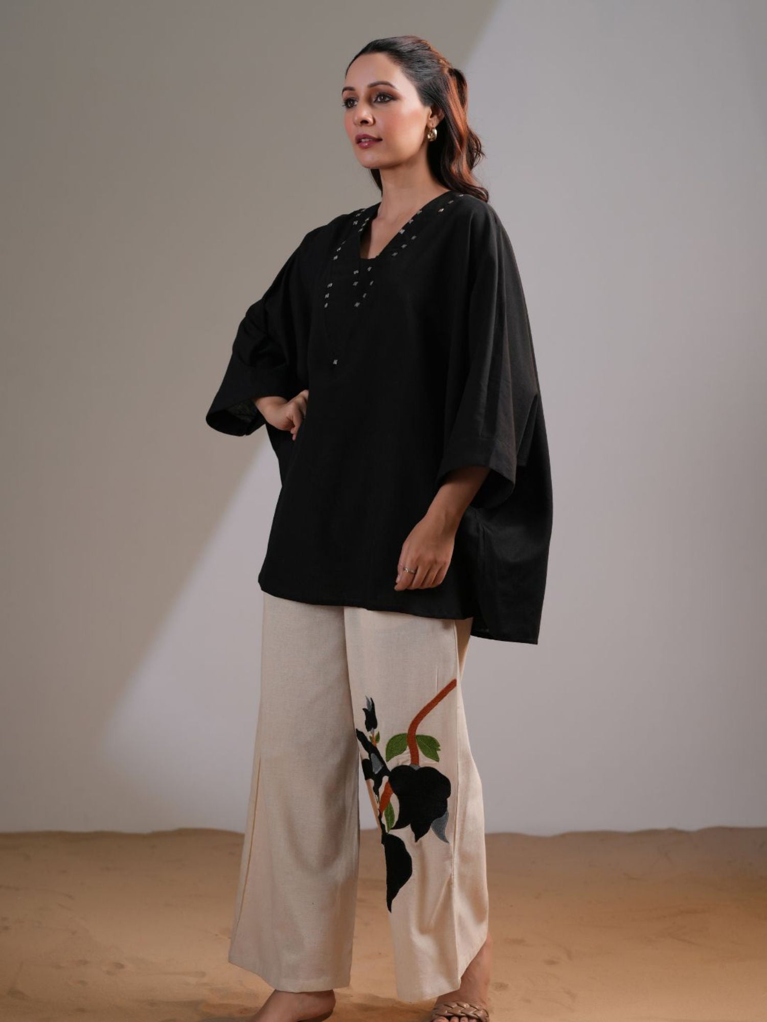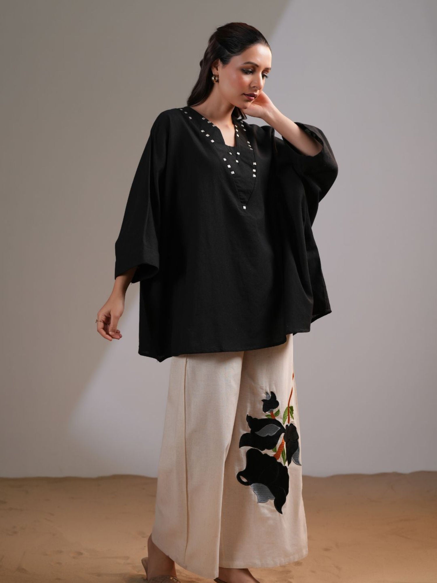 Black Pink Embellished V-Neck Co-Ord (Set of 2)