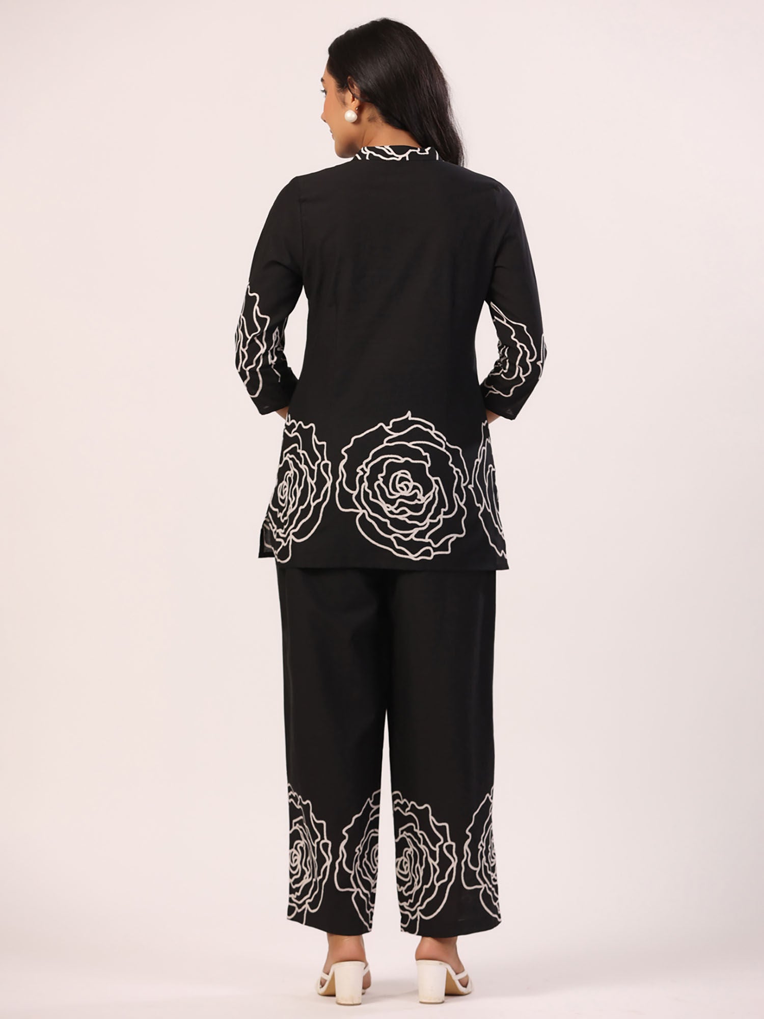 Black Printed Top with Pant (Set of 2)