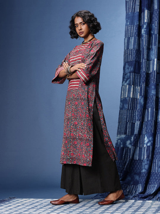 Taavi Bagru Indie Floral Printed Kurta with Palazzos & Dupatta