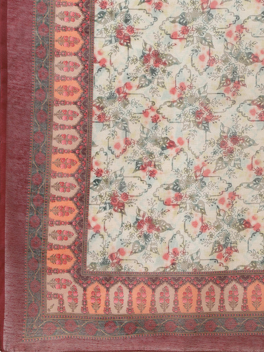 Sringam Plus Size Floral Printed Chanderi Cotton Kurta with Trousers & Dupatta