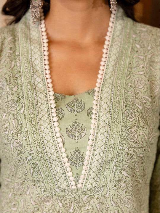 Floral Printed Regular Pure Cotton Kurta with Trousers & With Dupatta