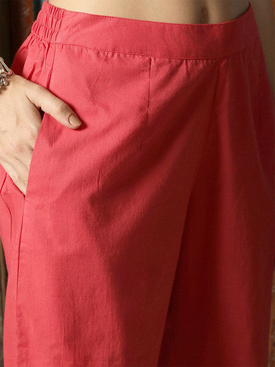 Taavi Women Floral Hand Block Printed Pure Cotton Kurta With Trousers & Dupatta