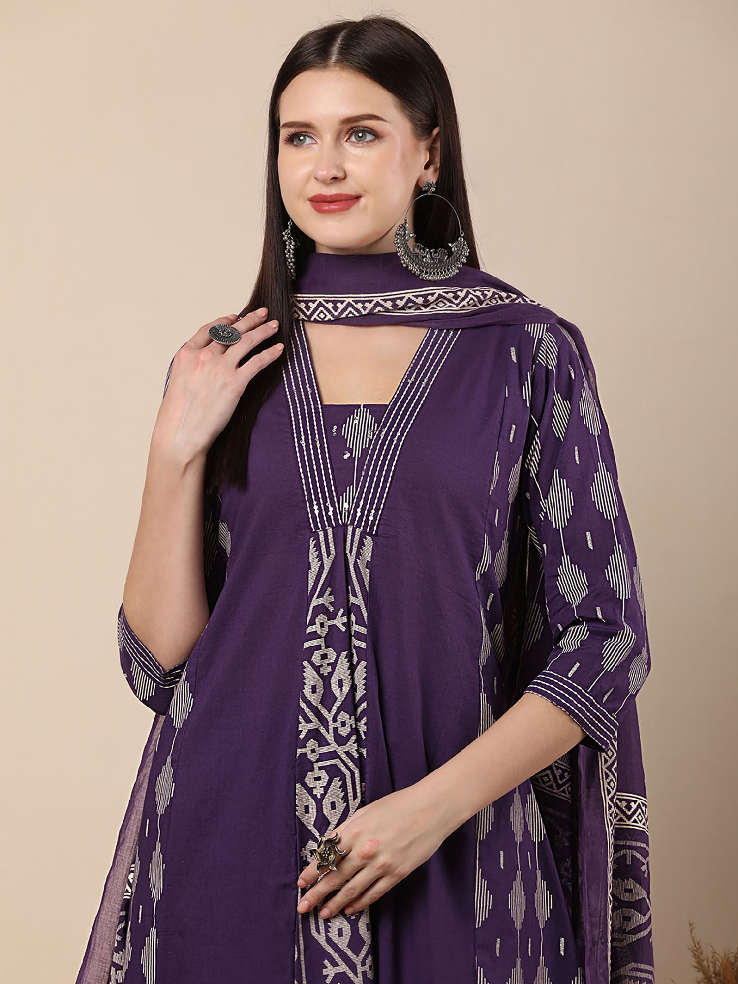 Printed Embroidered Kurta with Pant and Dupatta (Set of 3)