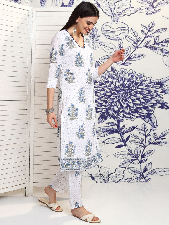 Vishudh Floral Printed Pure Cotton Straight Kurta & Trousers With Dupatta