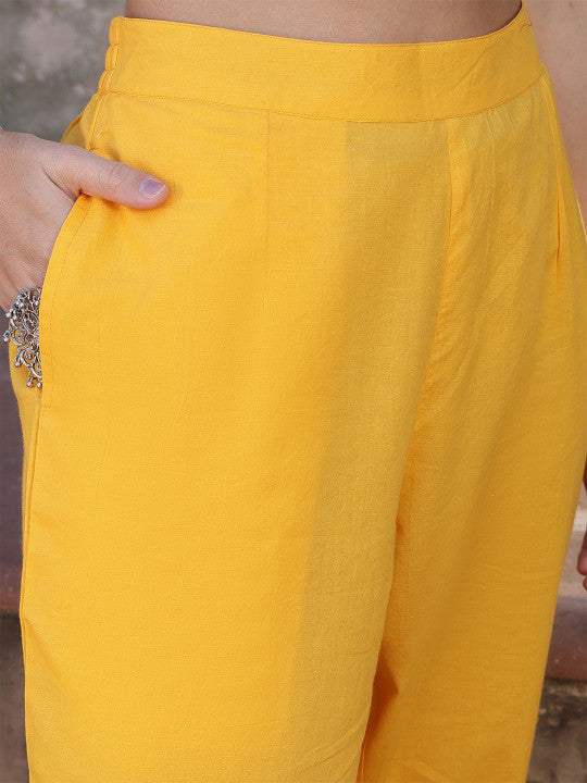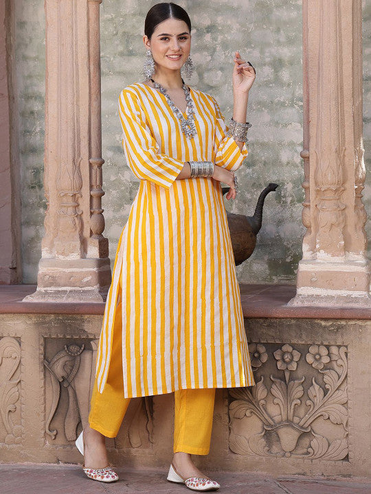 Taavi Straiped Printed Pure Cotton Hand Block Print Kurta With Trousers & Dupatta