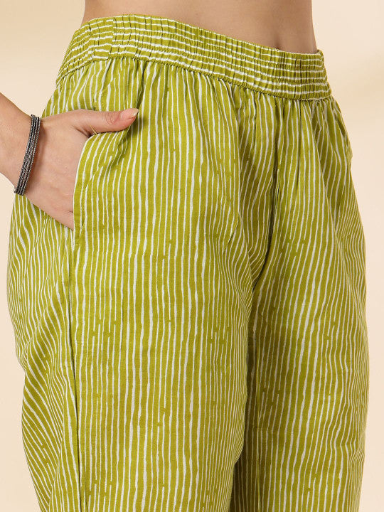 Yufta Women Floral Printed Regular Pure Cotton Kurta with Trousers & With Dupatta