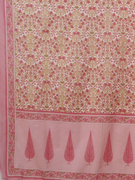 FASHOR Women Floral Printed Thread Work Pure Cotton Kurta Trousers With Dupatta