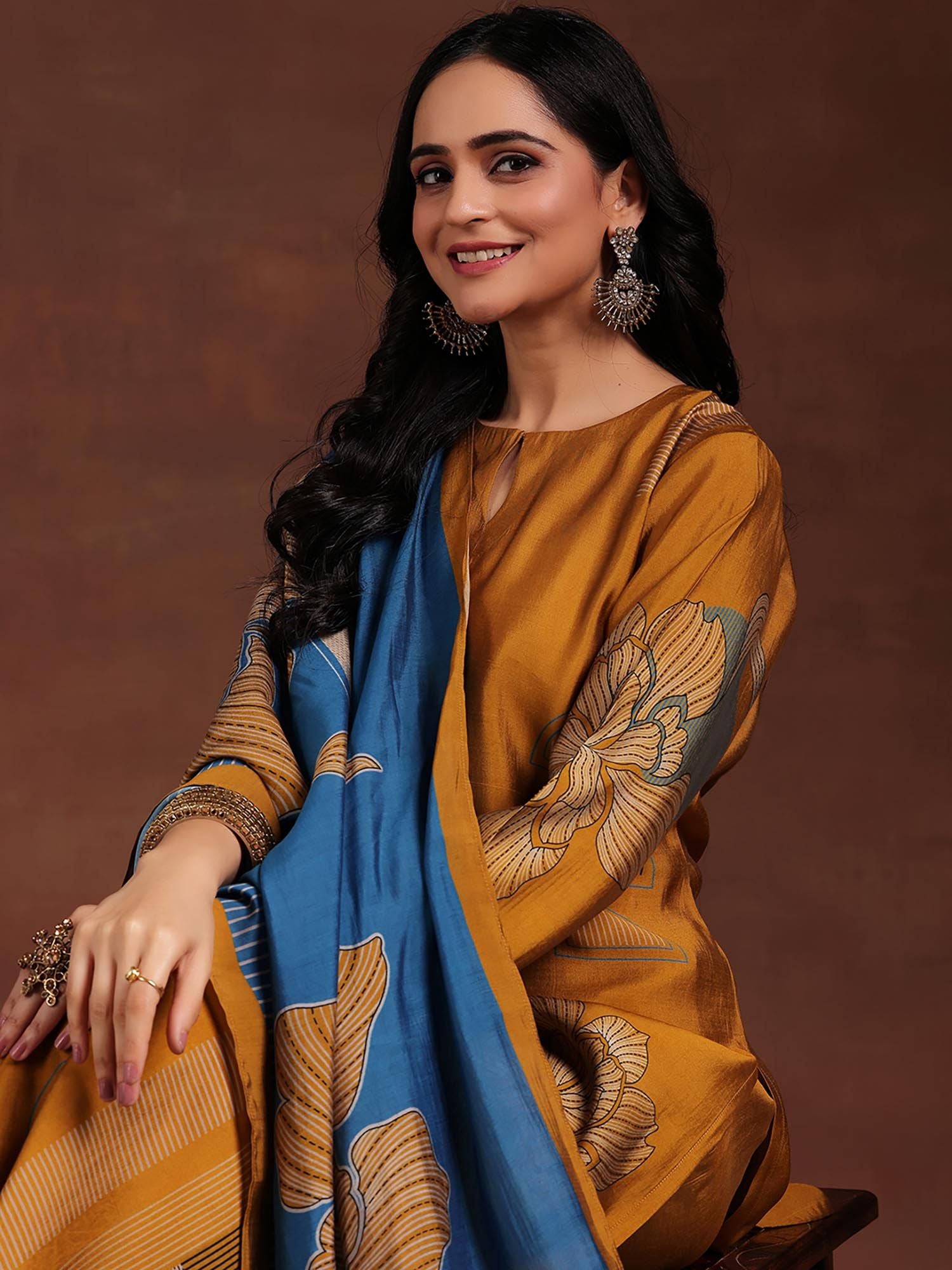 Floral Printed Straight Kurta With Pant And Dupatta (Set of 3)