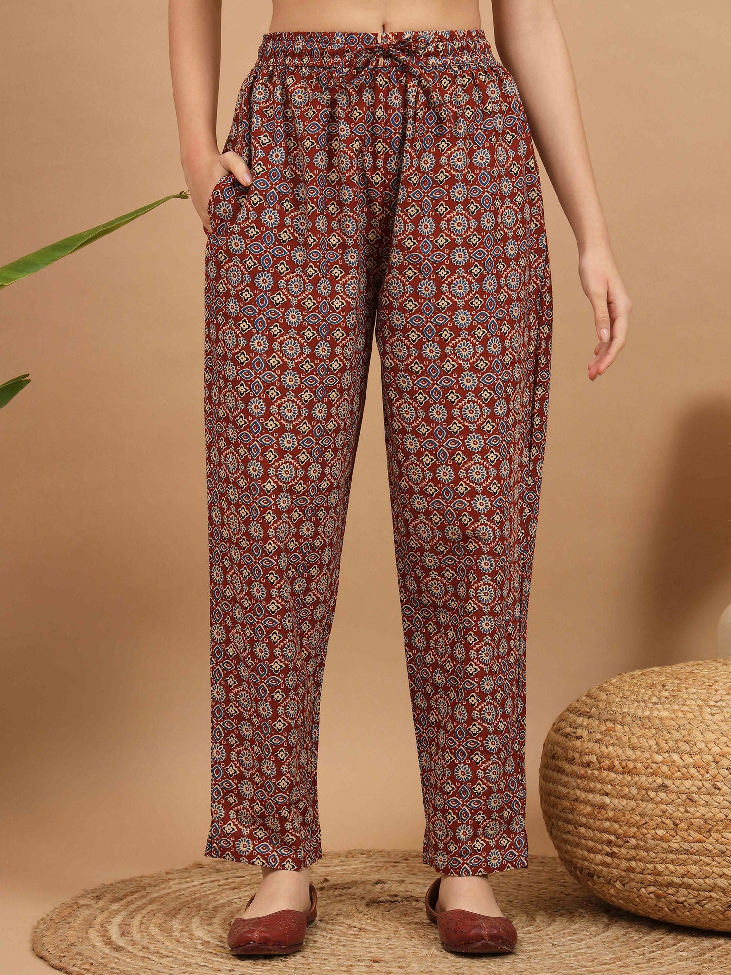 Women Floral Print Cotton Maroon Stitched Kurta Pant With Dupatta (Set of 3)