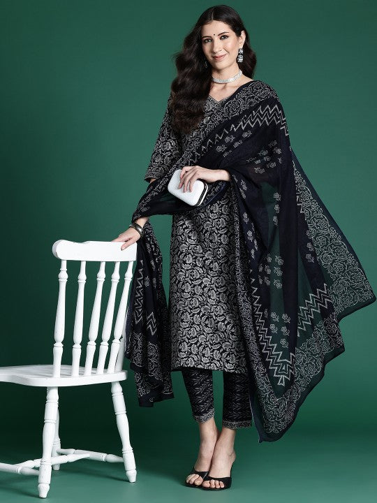 Indo Era Women Ethnic Motifs Printed Regular Pure Cotton Kurta with Trousers & With Dupatta