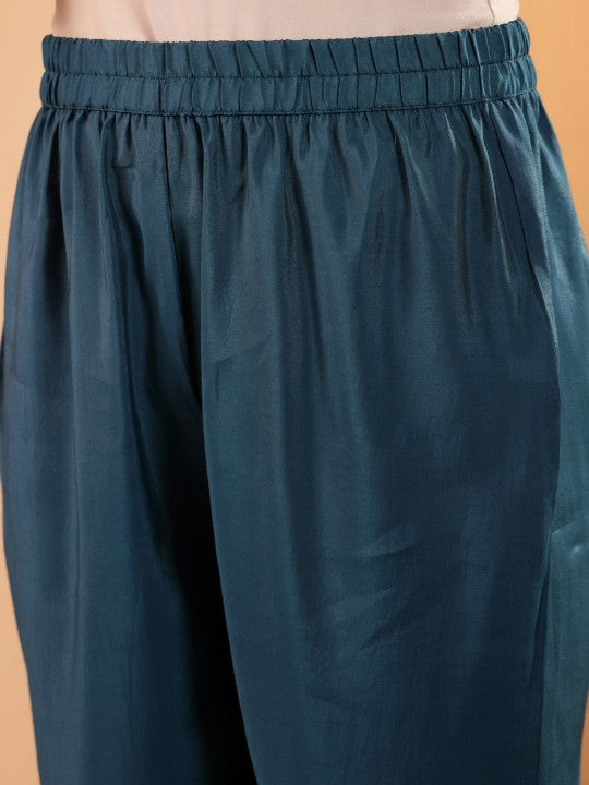 Varanga Ethnic Motifs Printed Sequnnied Chanderi Silk Kurta With Trousers And Dupatta