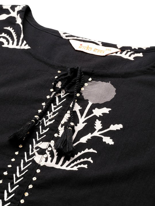 Indo Era Plus Size Floral Printed Sequinned Pure Cotton Kurta with Trousers & With Dupatta