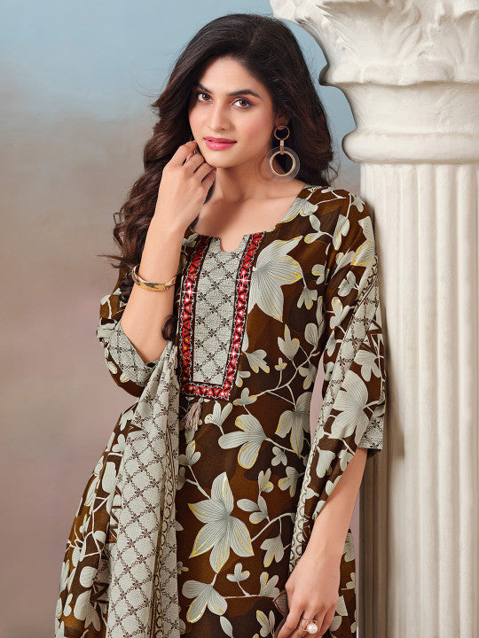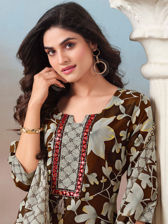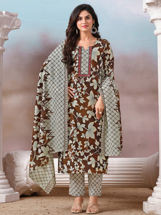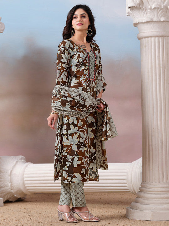 Varanga Women Floral Printed Regular Kurta with Trousers & With Dupatta