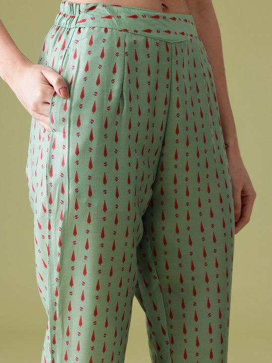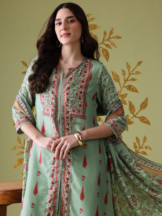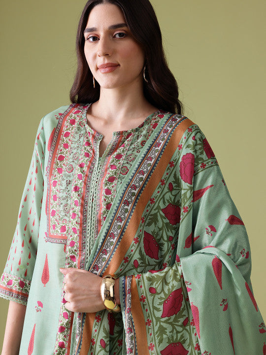 Anouk Floral Printed Pure Cotton Kurta With Trousers & Dupatta