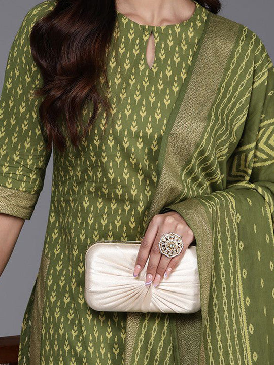 Floral Printed Regular Round Neck Straight Kurta With Trousers And Dupatta