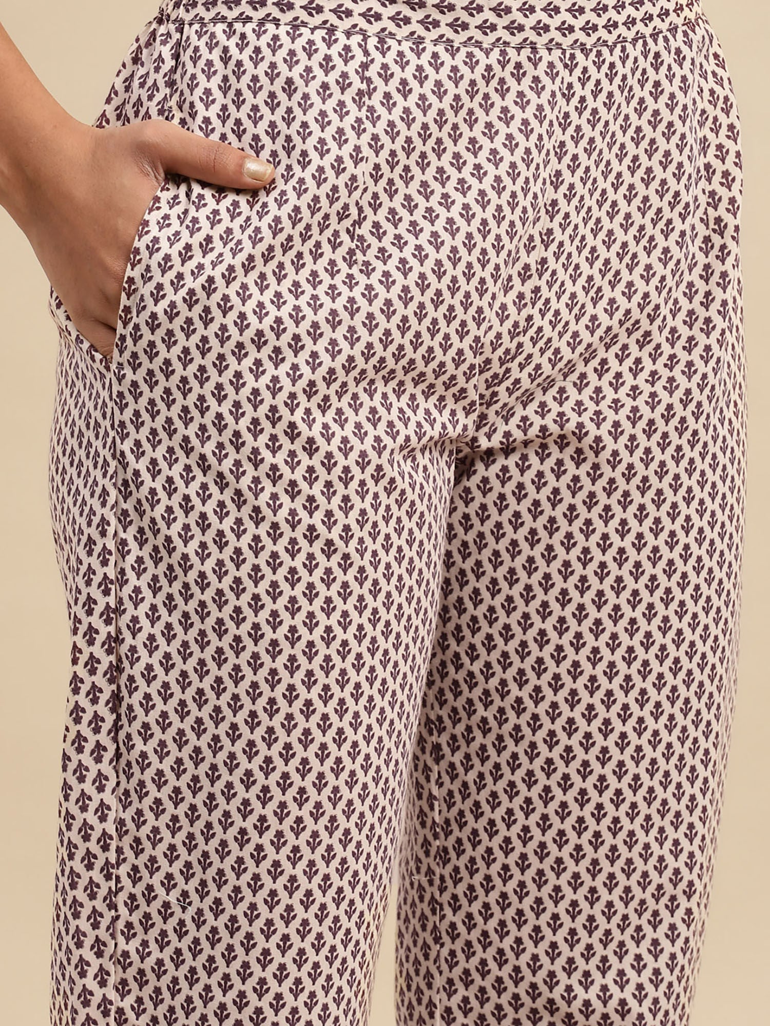 Womens Purple & Off White Printed Kurta with Pant and Dupatta (Set of 3)
