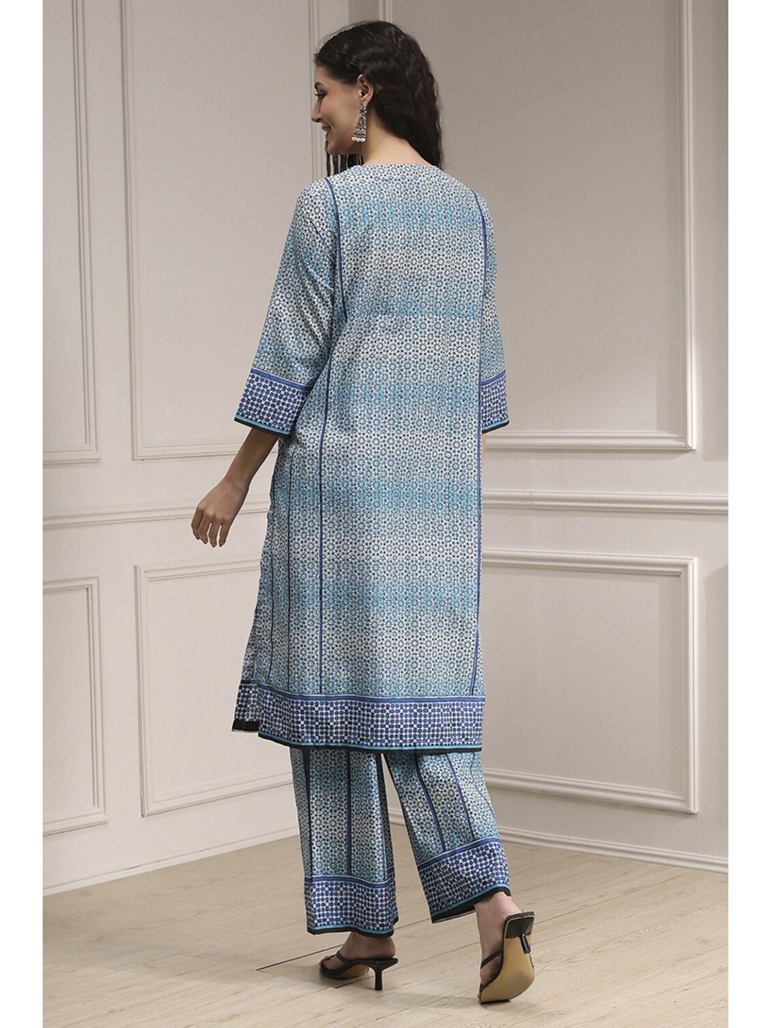 Women Blue Cotton Printed Kurta with Palazzo & Dupatta