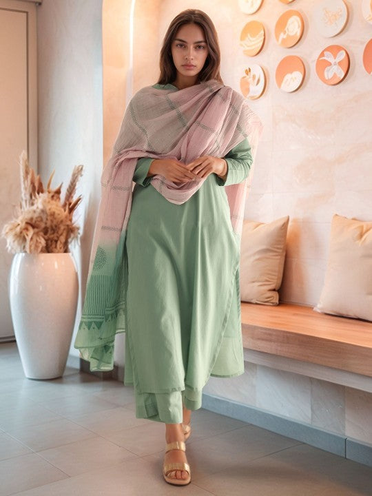 GoSriKi Notch Neck Straight Kurta & Palazzos With Dupatta