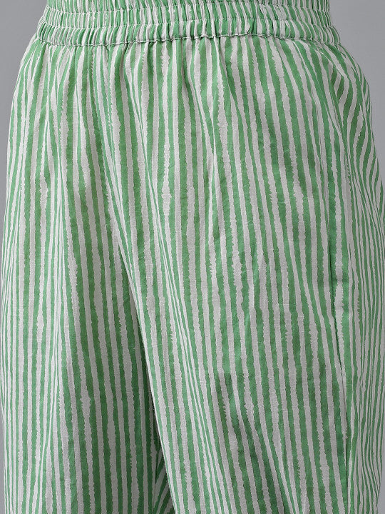 Amirah s Women Green Ethnic Motifs Printed Pure Cotton Kurta with Trousers & Dupatta