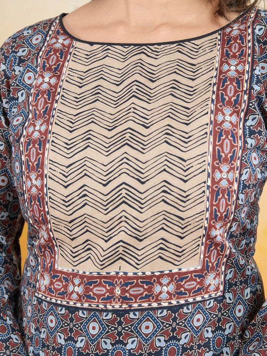 IOLY Women Ethnic Motifs Printed Regular Kantha Work Pure Cotton Kurti With Dupatta
