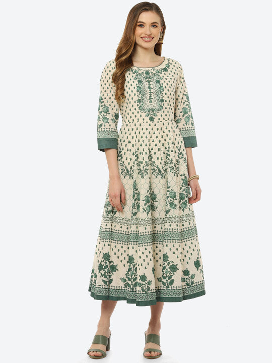 Biba Green Ethnic Motifs Ethnic Midi Dress