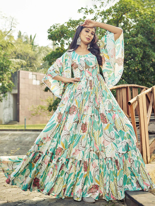 CHANSI Printed Cotton Fit & Flare Maxi length Gown Dress