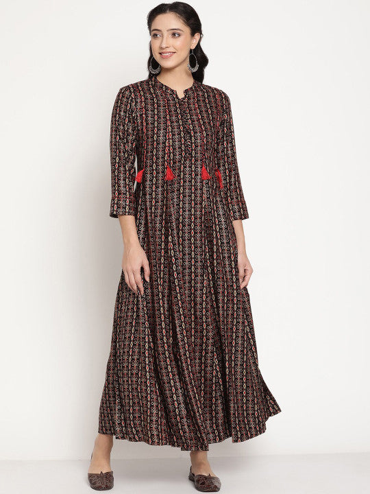 Be Indi Rayon Ethnic Motifs Printed Mandarin Collar Maxi Dress