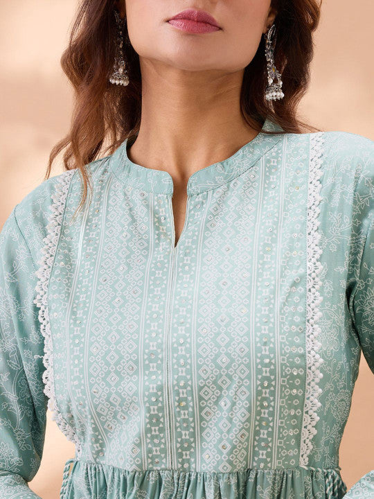 Globus Floral Print Fit & Flare Lace Detail Flared Hem Tiered Maxi Dress