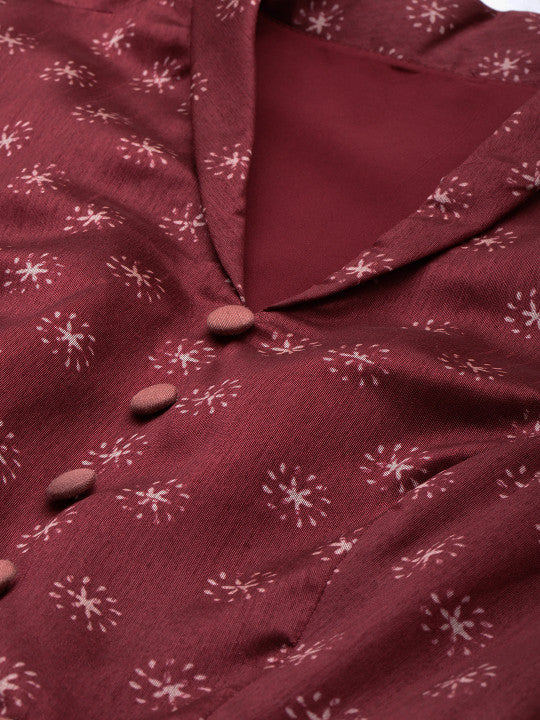 Ethnovog Floral Printed Gathered Gown Maxi Dress