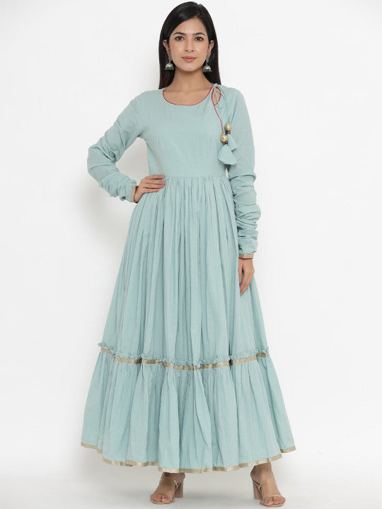 Indian Virasat Sea Green Cotton Ethnic Maxi Dress