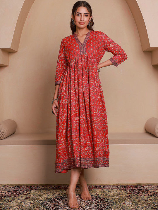 GULAB CHAND TRENDS Floral Printed Cotton Empire Ethnic Dresses