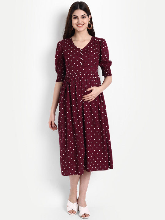 Aaruvi Ruchi Verma Maroon Maternity Midi Dress