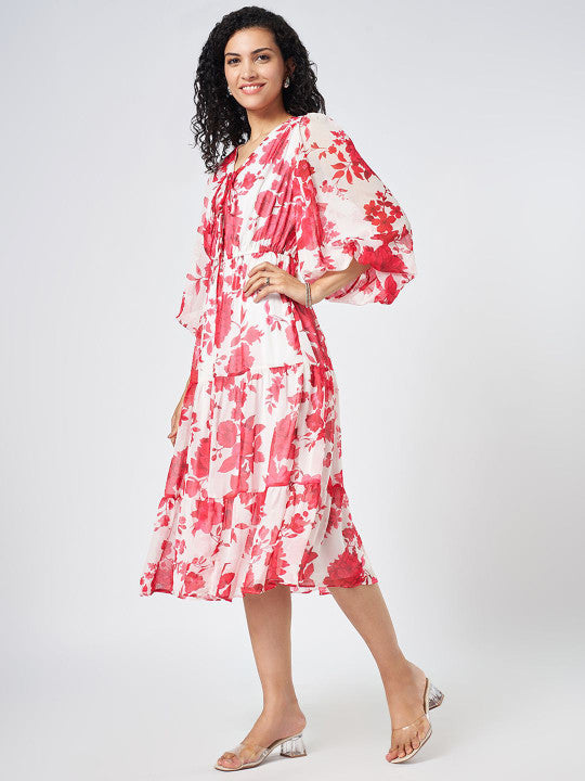 Honey by Pantaloons Women Floral Print Bell Sleeve Fit & Flare Midi Dress