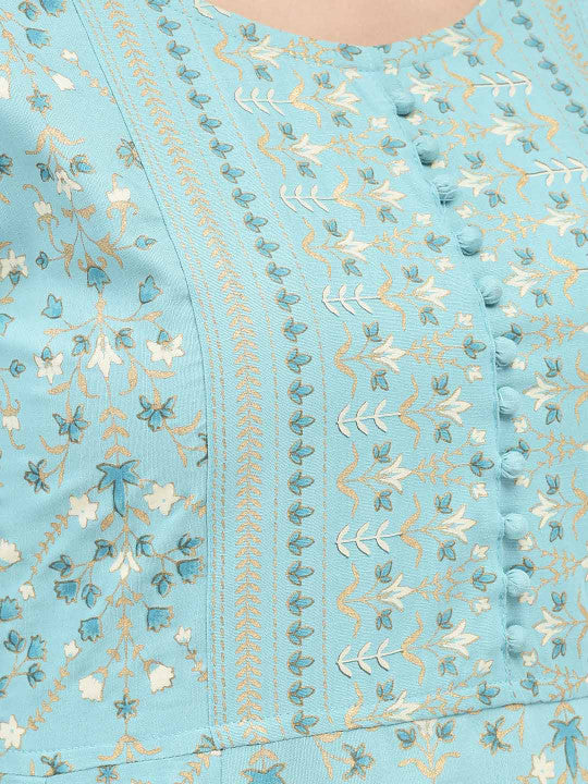Span Floral Printed Cotton A-Line Midi Ethnic Dress