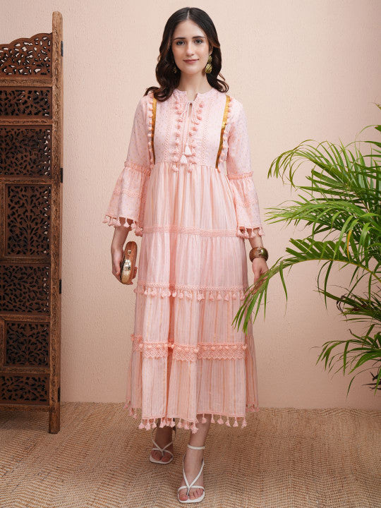 Vishudh Embroidered Bell Sleeve A-Line Maxi Dress