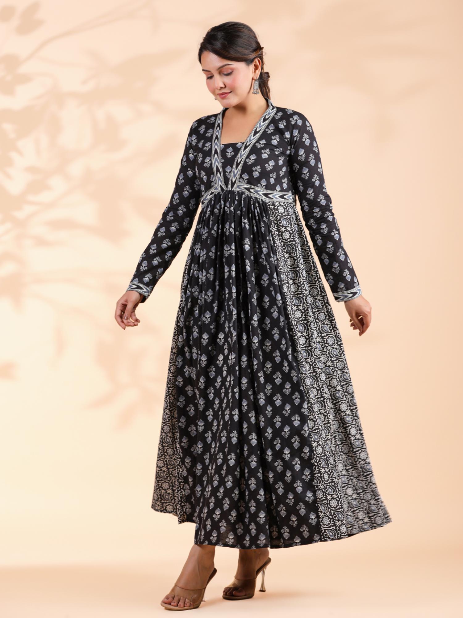 Women Alia Cut Anarkali Cotton Black Dress